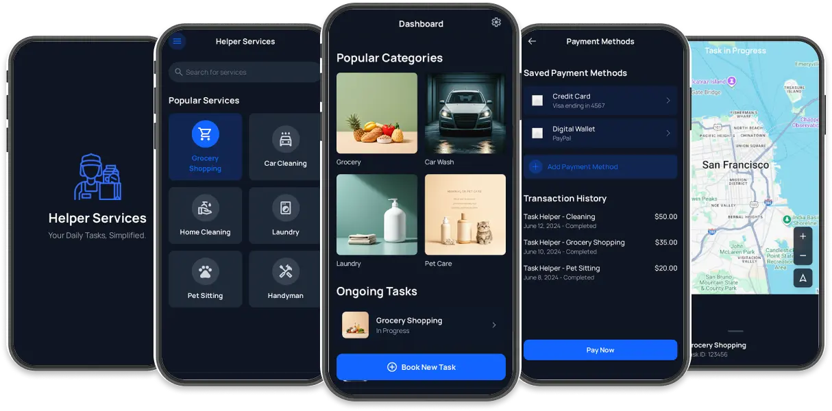 Helper Services is an on-demand app that makes daily work easier by connecting you with trusted task helpers. Whether itโ€™s grocery shopping, picking up a parcel, standing in line, getting your car cleaned, or handling home deliveries โ€” weโ€™ve got you covered. With real-time bookings, GPS tracking, hassle-free digital payments, and loyalty rewards, Helper Services takes the stress out of daily works so you can focus on what matters most.